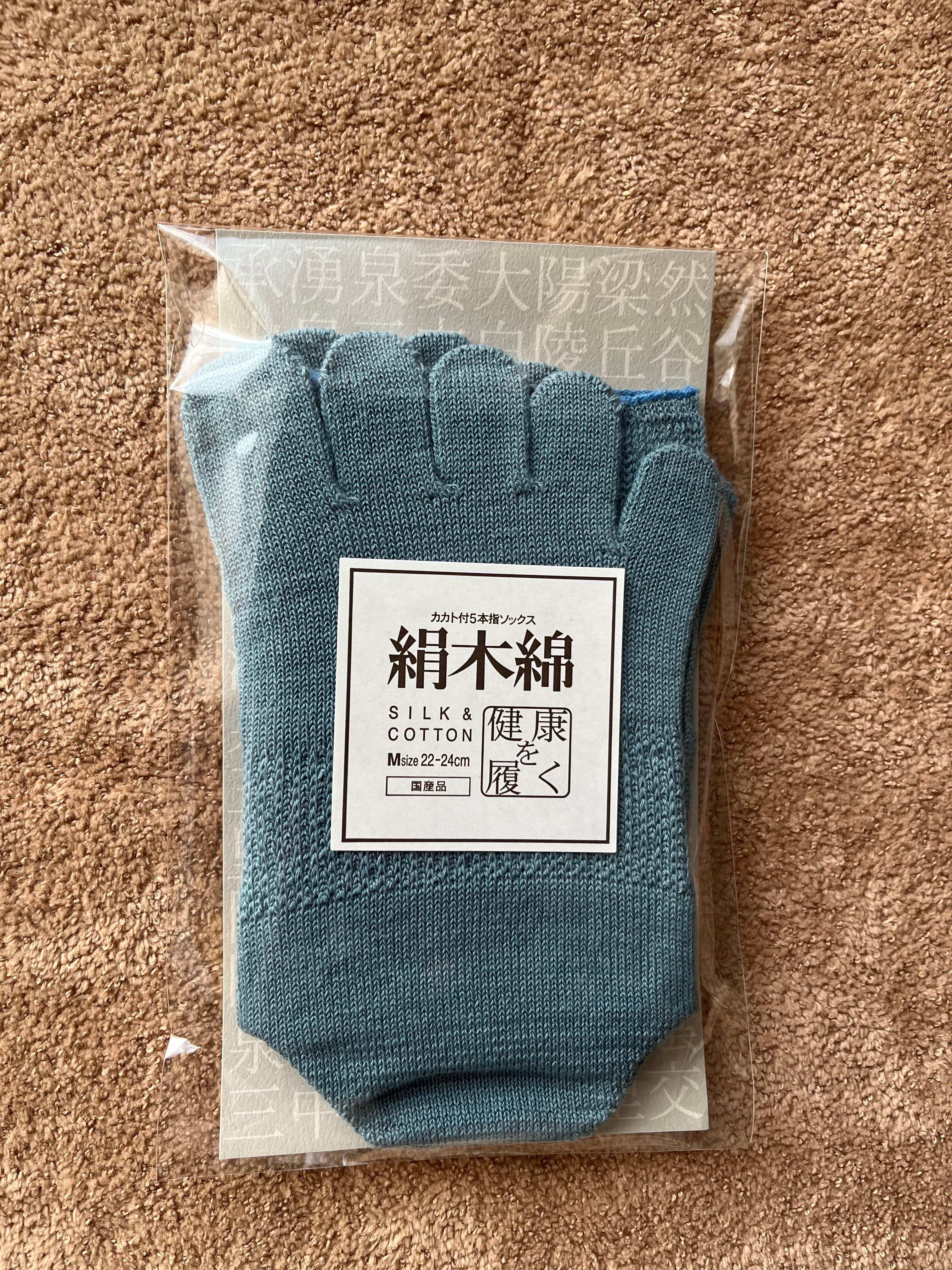 【くつ下】大法紡績・絹木綿〜カカト付5本指ソックス〜 サイズ M:22~24cm/ブルー